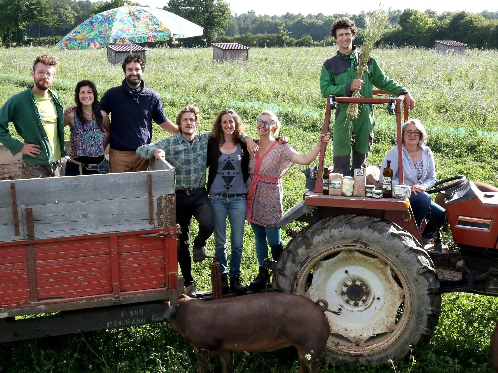 La Granja Trevero, con una extensión de 90 hectáreas, consta de varios talleres interconectados, todos ellos respetuosos con la biodiversidad y los organismos vivos. Con el objetivo principal de alimentar a las personas, cultivamos unas veinte variedades de plantas comestibles (trigo, cebada, guisantes, cáñamo, trigo sarraceno, etc.). Nuestros cerdos nacen y se crían al aire libre durante toda su vida. Vagan por bosques y prados, buscando hierbas, raíces y bellotas. Además, les proporcionamos una dieta que utiliza subproductos de la granja. Nuestras gallinas se crían en gallineros móviles. Las trasladamos semanalmente dentro de su amplio recinto plantado con árboles frutales. Esto ayuda a preservar el suelo y les proporciona hierba fresca y abundantes insectos. Nuestro ganado se cría completamente al aire libre. Su dieta se compone exclusivamente de pasto y heno. La Granja Trévero es más que un simple lugar de producción; también es un lugar para vivir, trabajar y aprender juntos. Creemos que la agricultura, en el contexto de la transición ecológica y social, depende de más empleos agrícolas y de un trabajo versátil gracias a la diversidad de nuestra producción y la relocalización del procesamiento. Nos acompañan en esta emocionante aventura Simon, Clémence, Aurélia, Mélaine, Gauthier, Saïmone y Sylvie como empleados. Nuestros productos orgánicos incluyen: - Carne de cerdo fresca al corte, envasada al vacío - Terrinas de cerdo y pollo en frascos - Platos preparados en frascos - Carne de res al corte, envasada al vacío - Harinas de trigo, trigo sarraceno, centeno y mijo - Semillas de cáñamo y trigo sarraceno - Aceites de colza, girasol, cáñamo y camelina - Patatas - Y algunos productos de nuestros colaboradores: pan, yogur y queso orgánicos, mostaza orgánica…