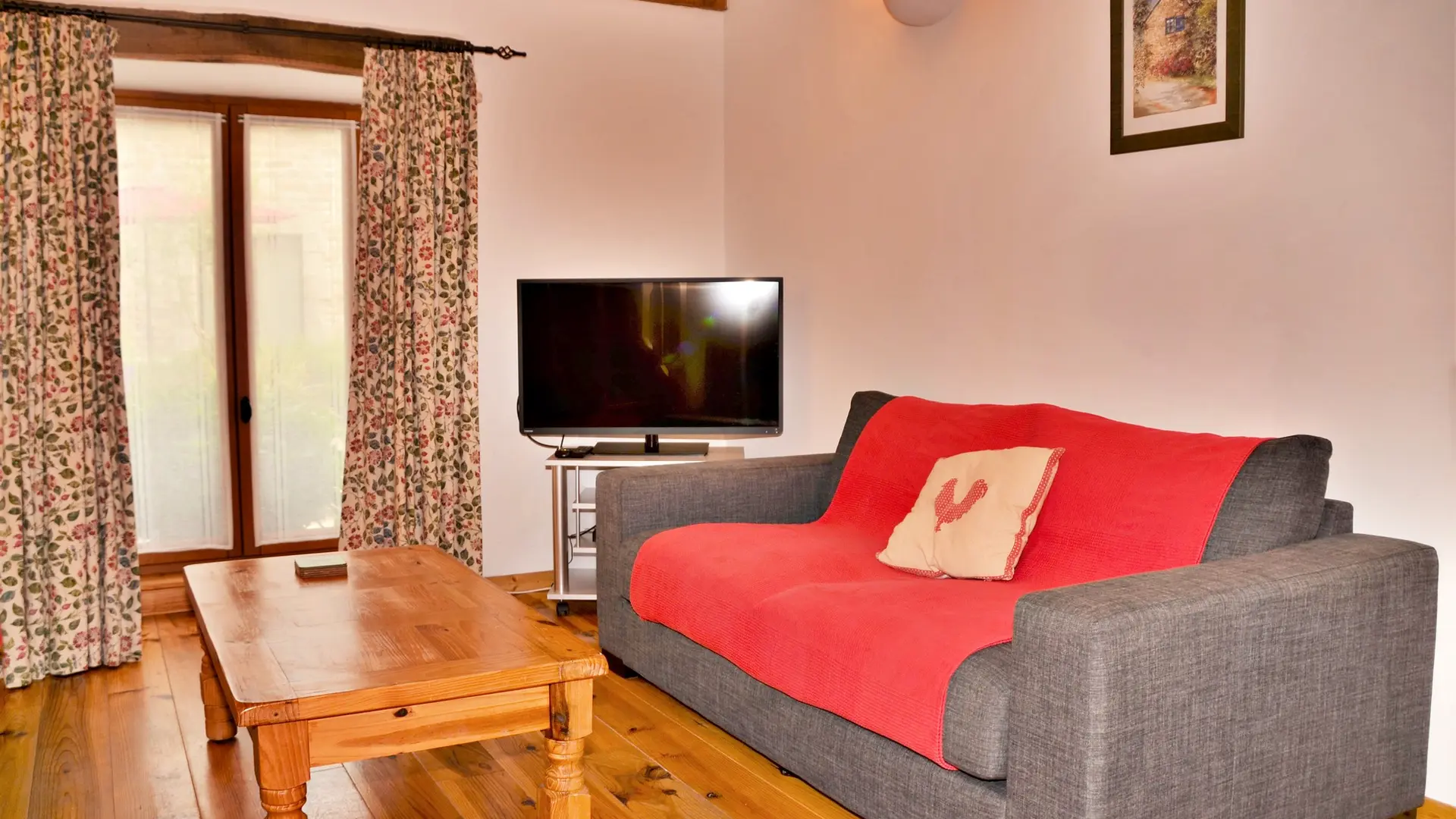 La planta baja consta de un salón que da al comedor y a la cocina con vigas vistas, dos sofás y un televisor LED con reproductor de DVD. La cocina está totalmente equipada con microondas, lavavajillas, lavadora y frigorífico-congelador. La buhardilla de la primera planta consta de un dormitorio con cama doble, un dormitorio con dos camas individuales y un baño con WC. Exterior: La casa cuenta con un jardín privado y cerrado con cama elástica, entrada independiente y aparcamiento, una terraza con muebles de jardín de madera y barbacoa. El acceso al amplio jardín con árboles y flores, totalmente vallado, conduce a la piscina cubierta y climatizada de 12 x 6 m (segura y vallada, abierta de abril a finales de octubre) y a la sala de juegos para niños y adultos. En la parte trasera de la propiedad, hay una amplia zona de césped para juegos de pelota (campo de fútbol), bádminton y petanca. Camas hechas a su llegada. Cuna y trona disponibles con reserva previa. Alquiler de toallas bajo petición. Alojamiento para no fumadores. Se aplicará una tasa turística por persona y noche. El importe varía según el tipo y la categoría del alojamiento. Consultar.