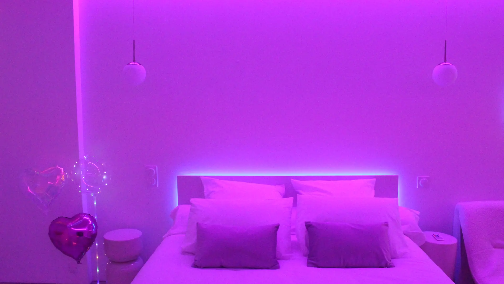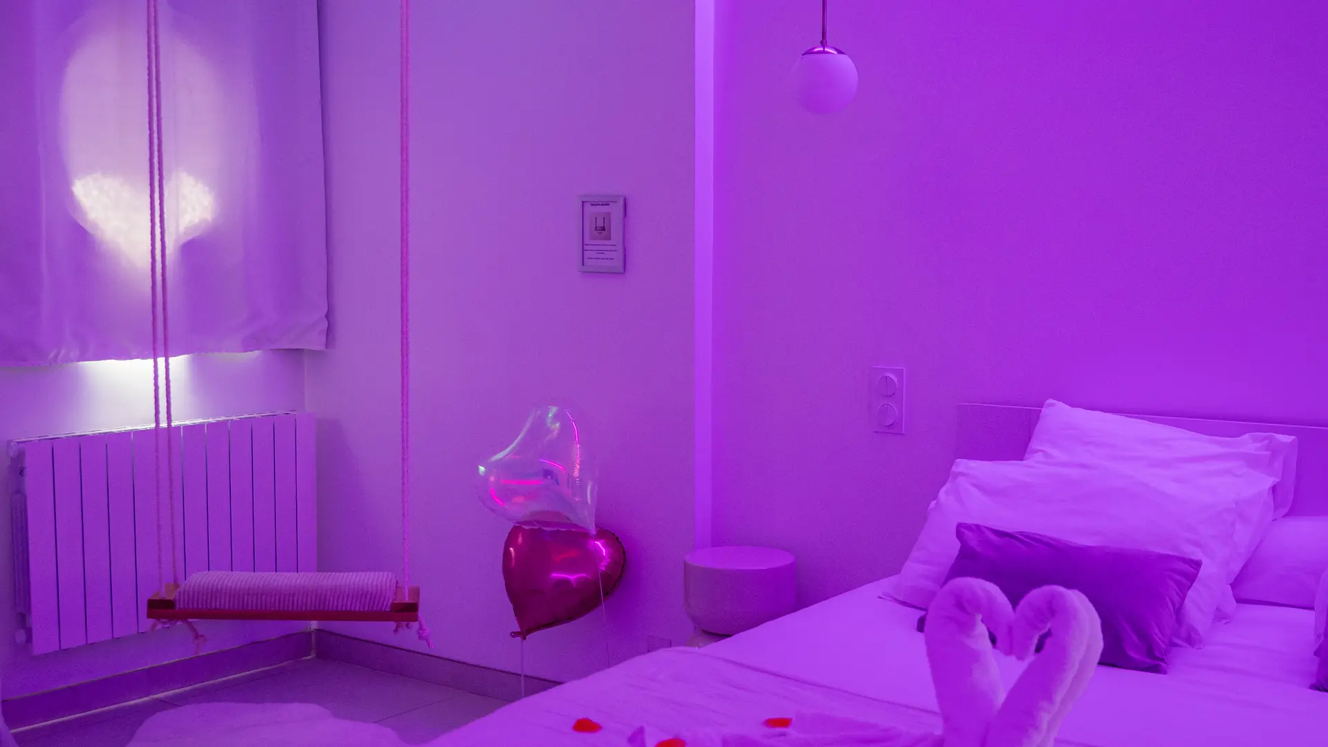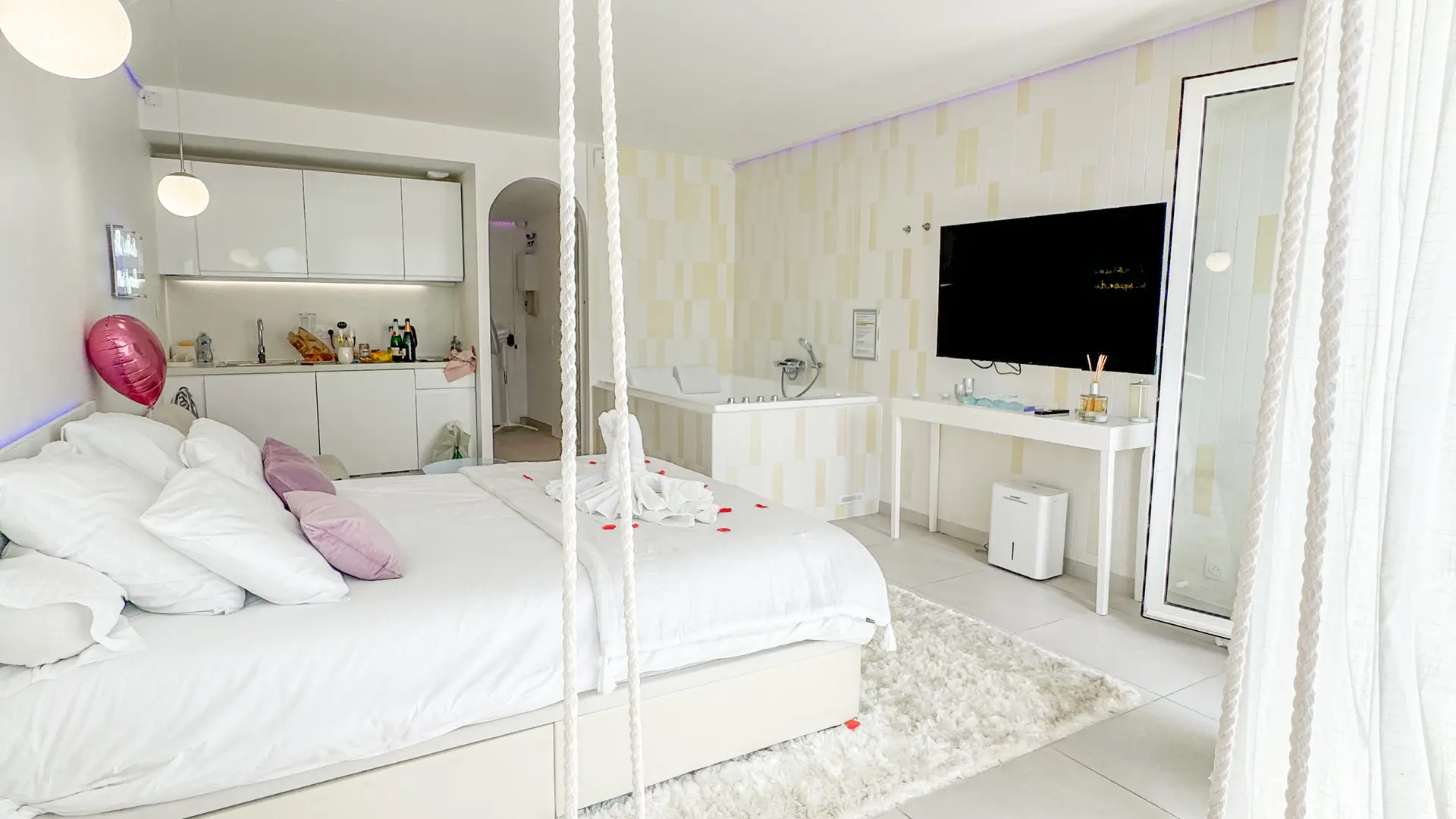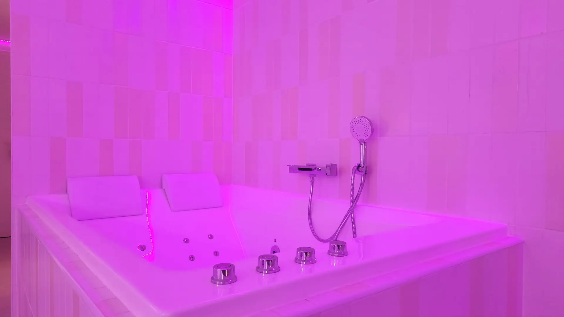 Esta habitación del amor con bañera de hidromasaje doble climatizada ofrece un ambiente acogedor ideal para vivir un momento único y atemporal.