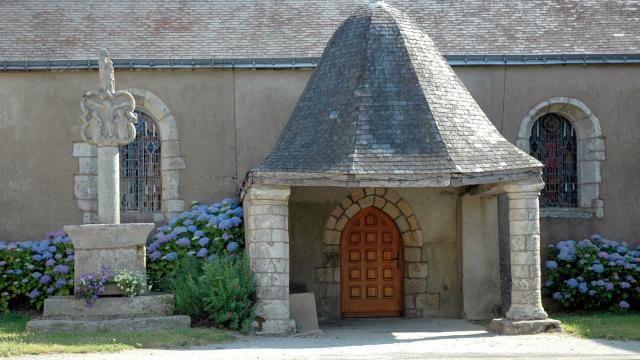 Frente a la iglesia, dos cruces clasificadas como Monumentos Históricos: