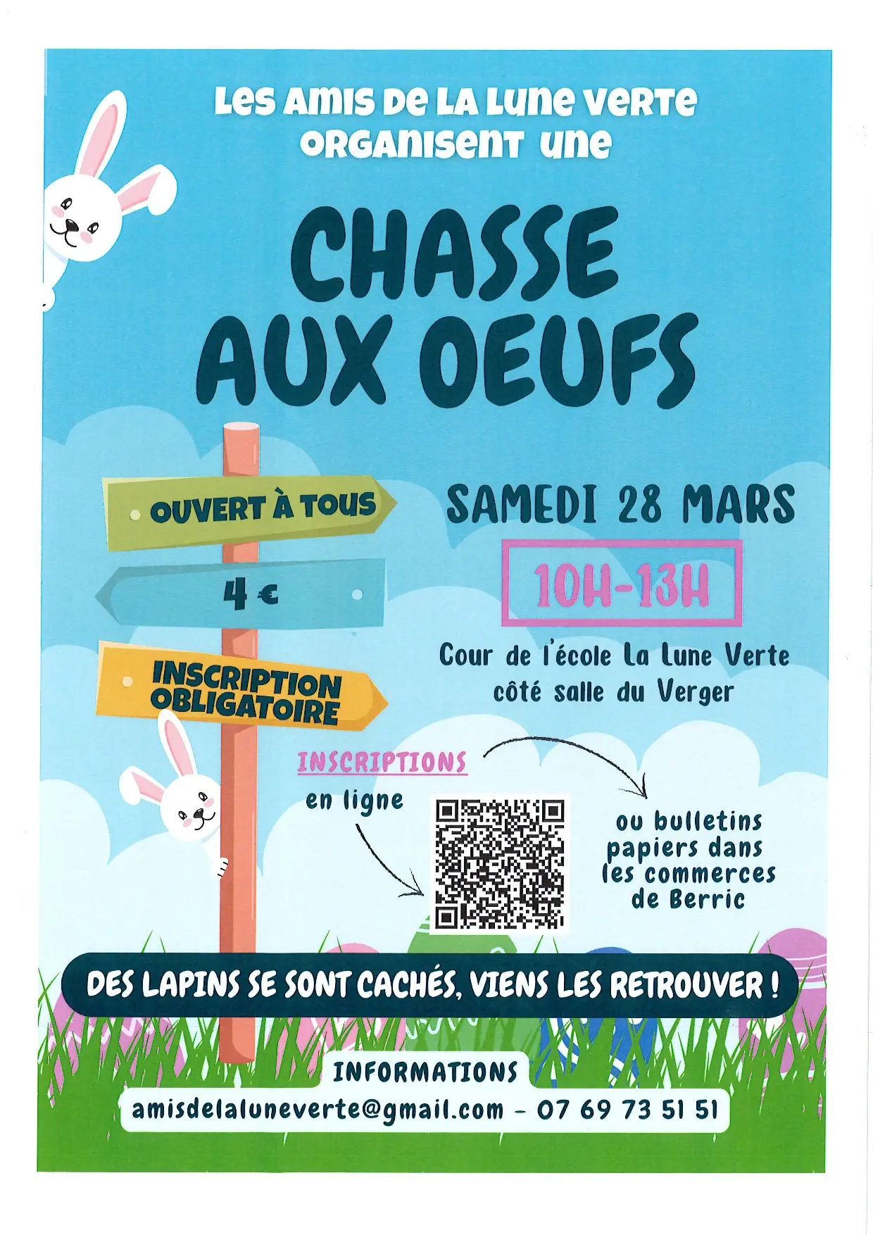 ¡Los conejos se esconden, ven a buscarlos! Abierto a todos. 4 €. Es necesario inscribirse (en línea haciendo clic en el botón "Reservar" en esta página o en tiendas).