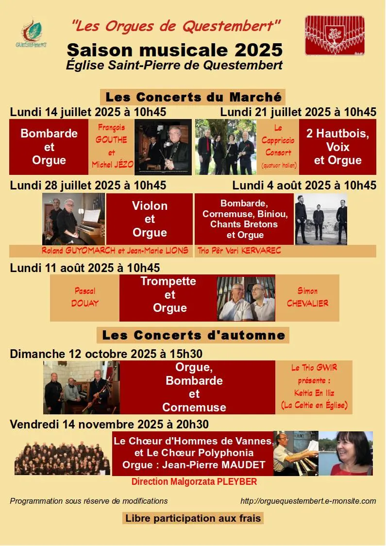 Coro Masculino de Vannes, bajo la dirección de Malgorzata Pleyber. El repertorio religioso clásico de sus inicios se ha ampliado para incluir el Romanticismo y diversas obras europeas e internacionales, sin olvidar los grandes coros de la ópera. Coro Polyphonia: Creado en septiembre de 2003, Polyphonia es el Conjunto Polifónico del Conservatorio Departamental de Vannes. El coro es mixto e incluye a más de 50 cantantes, dirigidos por Malgorzata Pleyber. Jean-Pierre Maudet toca el órgano.