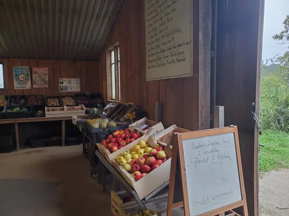 Productos de productores y artesanos locales y ecológicos: verduras, frutas, quesos de vaca, oveja y cabra, pan, tartas, pasteles y otras delicias, infusiones, carnes, graneles, sal...